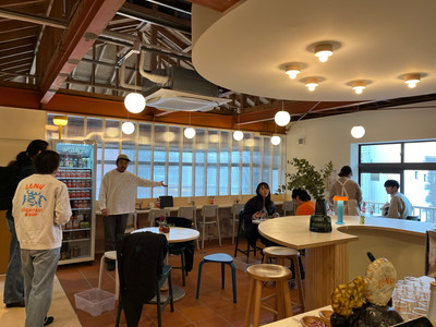 ちょうど、チョークボーイとして活動し始めた頃はインスタが普及した時期と重なる。画像SNSで、飛躍的に拡散され、その活動が注目され、いろんな話が舞い込んで、瞬く間に軌道に乗っていった。SNSというデジタルなツールを武器にアナログな描き文字を売るビジネスモデルだ。あちこちに出張することの多いビジネスでもあるが、このタイミングで、カフェというリアルな拠点を構えたのは、何を隠そう、「カフェが楽しい!」かったからに他ならない。その楽しい記憶は、すべて弊社のカフェで体験し、学んで感謝している、と本人も呟いている。